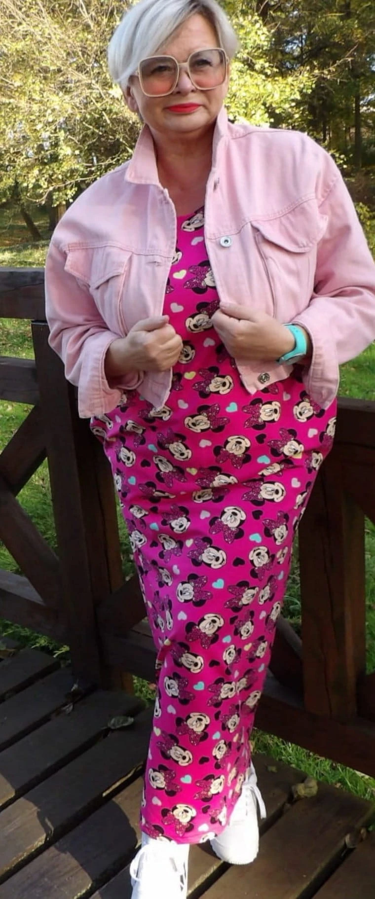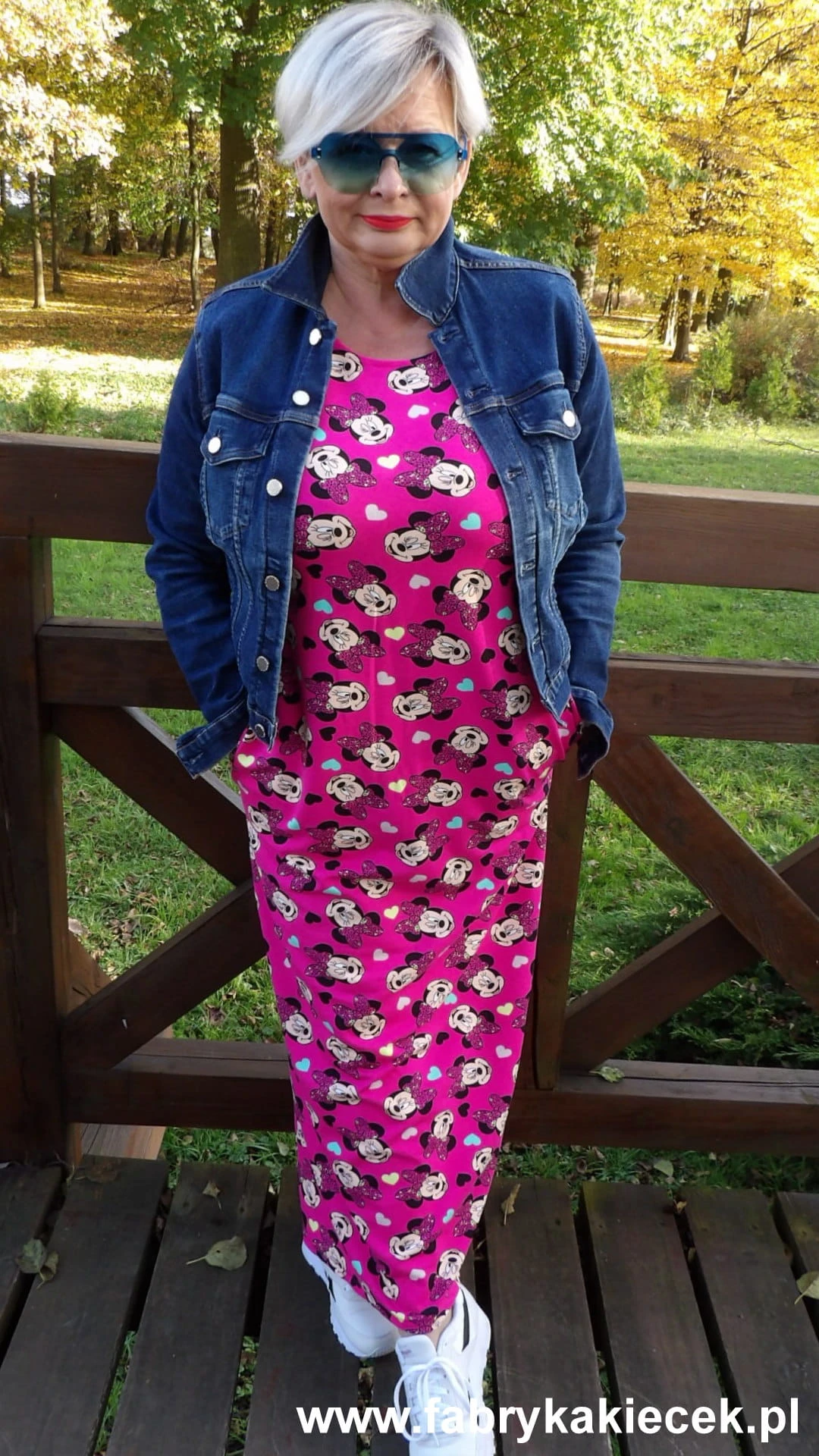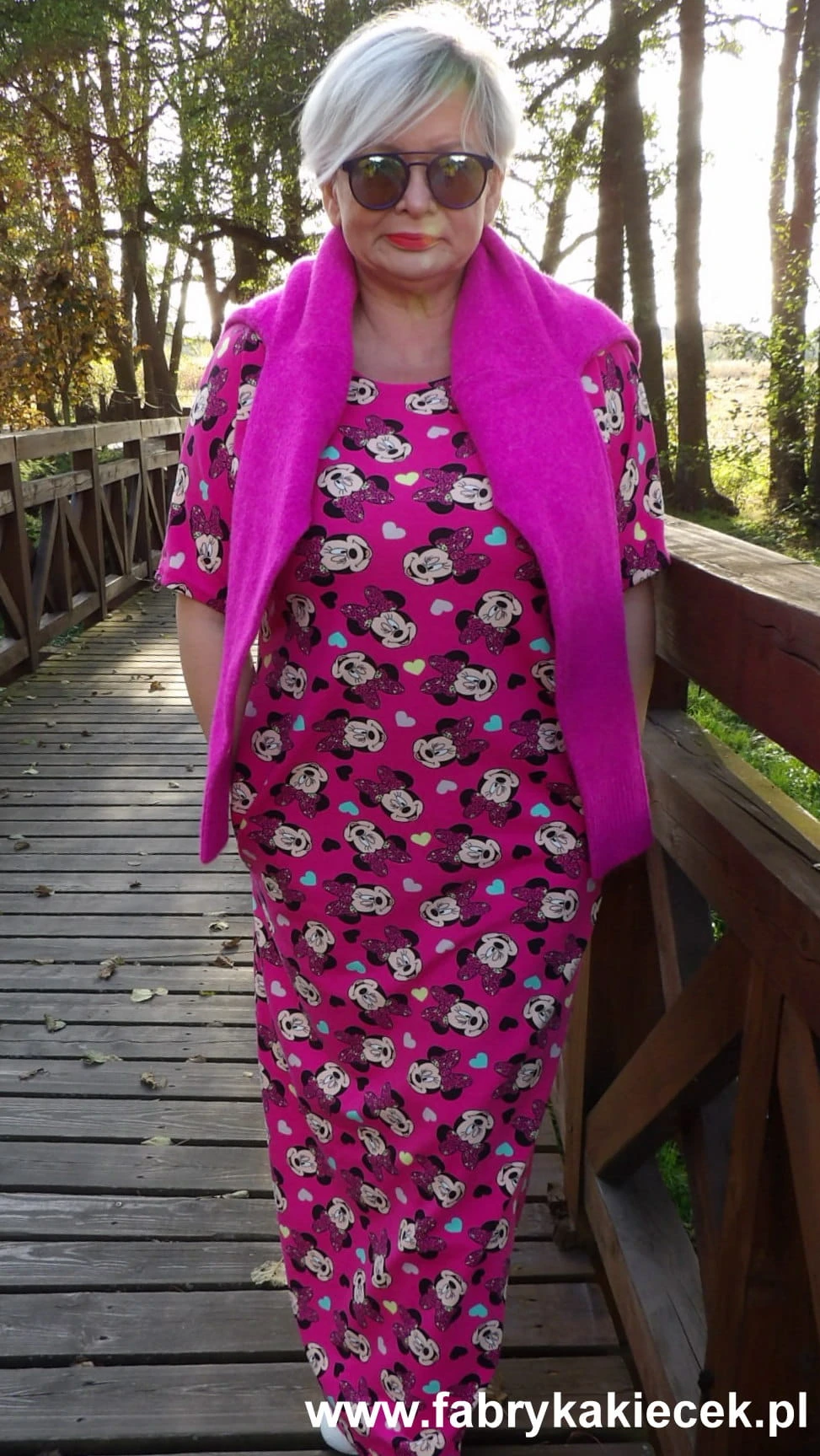 Sukienka 40/42 biust 112/114 cm, z elastycznej bawełny, naturalna, prosta, z kieszeniami, RÓŻOWA, BAJKOWA, MYSZKA