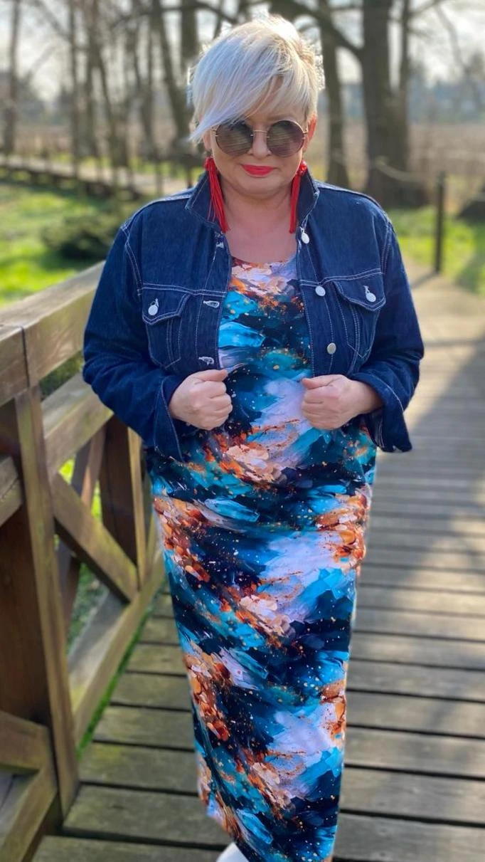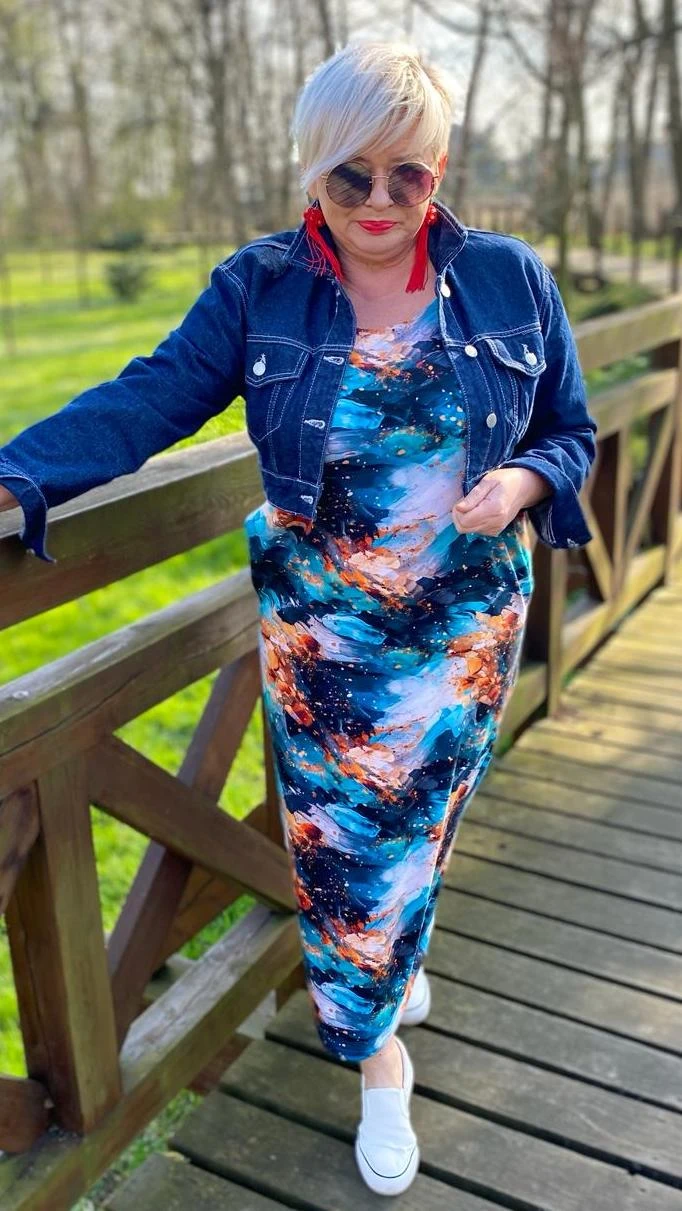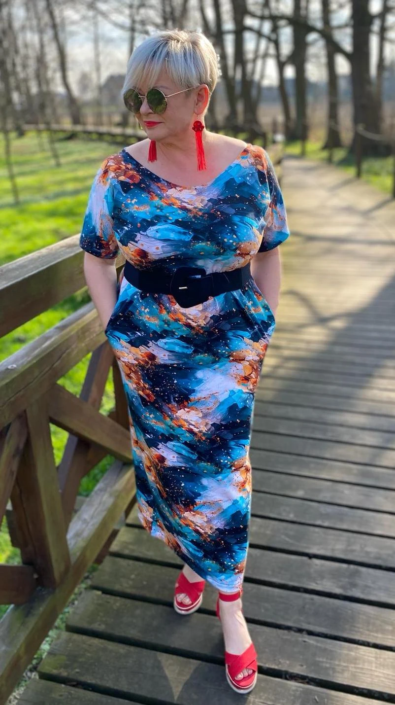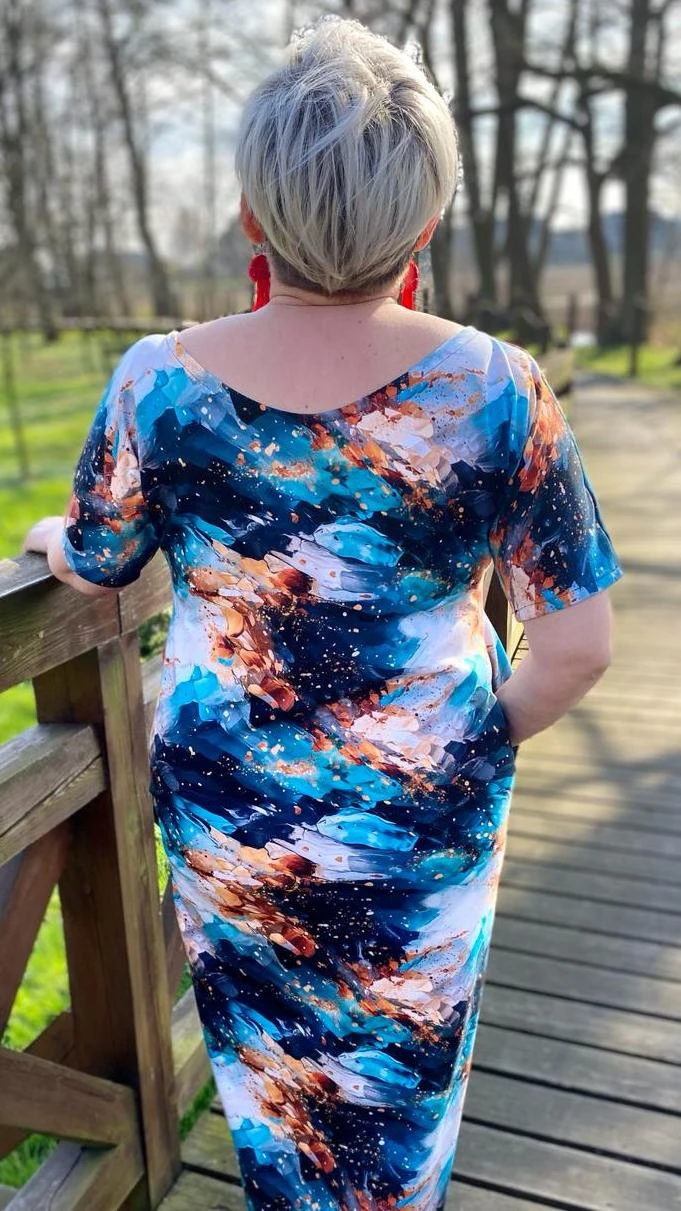 Sukienka 42/44 biust 116/118 cm, bawełniana, elastyczna, z kieszeniami, NATURALNA, WYGODNA, , KOLOROWA, FARBA, NIEBIESKA, MULTICOLOR