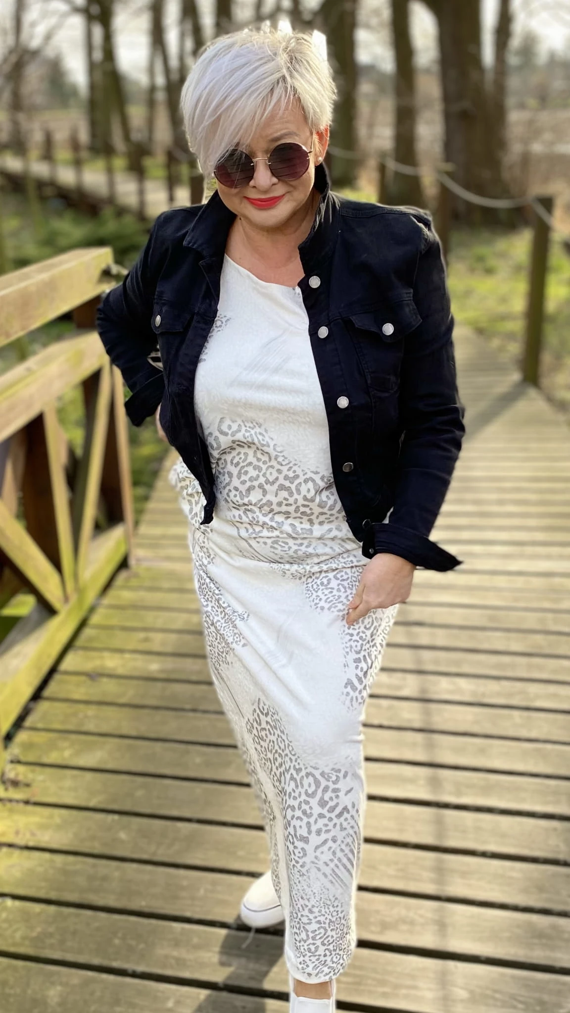 Klasyczny, prosty krój z kieszeniami podkreśla sylwetkę, a jednocześnie gwarantuje wygodę na co dzień.